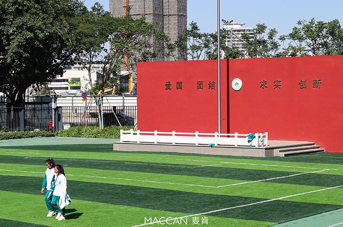 省實(shí)荔灣學(xué)校(花地灣校區(qū))位于廣州市荔灣區(qū)花地大道北320號。花地灣校區(qū)總用地面積約2.58萬平方米,總建筑面積約5.14萬平方米,總投資約2.73億元。穿越建筑體之間,鮮明的圖案與字體是學(xué)府身份的象征,標(biāo)識此刻略顯鋒芒。小學(xué)和初中各自圍合形成獨(dú)立、私密的活動庭院空間。校區(qū)底層設(shè)置共用學(xué)習(xí)區(qū)、生活區(qū)、運(yùn)動區(qū),創(chuàng)造高低年級段的互聯(lián)互通,提供安全高效學(xué)習(xí)空間。整體校園環(huán)境現(xiàn)代化、智能化、多彩化結(jié)合一體,鮮艷不失大體的建筑風(fēng)格為基調(diào),標(biāo)識也成為學(xué)校指引方位的重要靚麗風(fēng)景。
