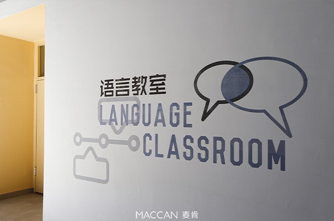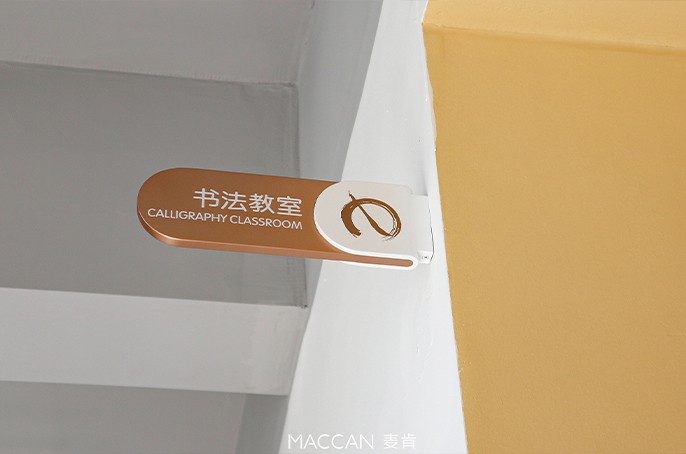 特立獨(dú)行的標(biāo)識符號美學(xué),極具向陽而生,充沛向上的積極能量。在校園巍峨屹立的建筑體上,彩虹顏色似的學(xué)校標(biāo)識,如奔放的旗幟與風(fēng)起舞,與莊嚴(yán)的石柱、拱廊相輝映,構(gòu)筑一幅夢幻童真的畫卷。校園墻面成為多元化、活躍、多彩的立體空間。