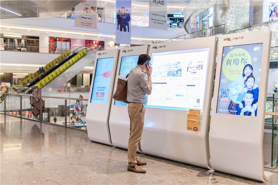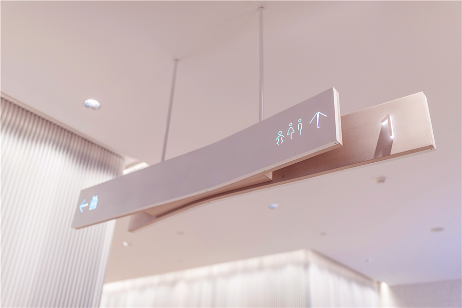 萬象天地導視系統(tǒng)整體簡約現(xiàn)代、且充滿設計感,在每一層設立服務臺,提供商場指引、指示牌、導視牌、樓層指南。全方位導視牌設置,且均布置在垂直電梯附近,美觀性與導視實用性相結合。