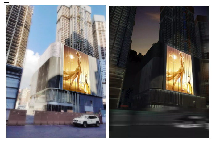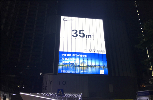 中洲燈箱廣告面積達(dá)410㎡,采用鋁型材活動(dòng)門(mén)、可編程LED光源、高透光燈箱布等前沿環(huán)保材料,與玻璃幕墻完美融合。
