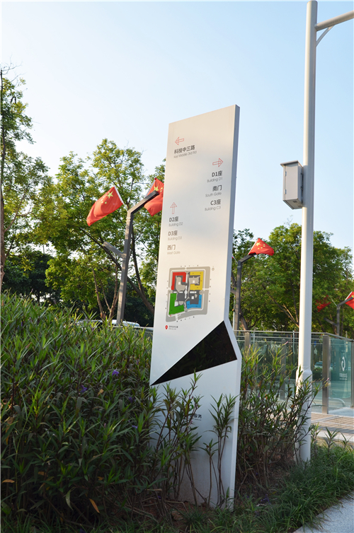 整套標(biāo)識(shí)以黑白為主調(diào),很符合科技園區(qū)嚴(yán)肅簡(jiǎn)潔氛圍,整體系統(tǒng)簡(jiǎn)潔大方。將其功能性發(fā)揮到最大化。在直觀明了的導(dǎo)視牌面輔以三維化導(dǎo)視牌,讓路癡的你也有了方向感。