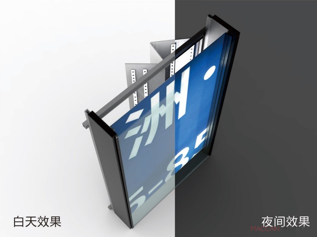 1.改變傳統(tǒng)燈箱安裝方式,減少廣告燈箱受到外部環(huán)境影響弊端,將燈箱整體內(nèi)置于幕墻玻璃內(nèi)部;