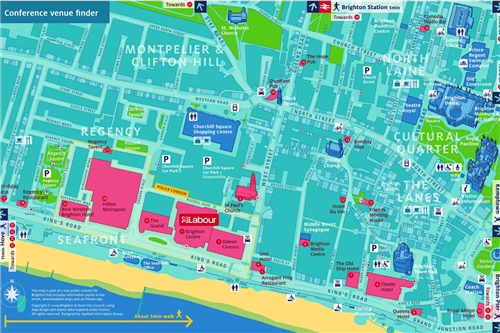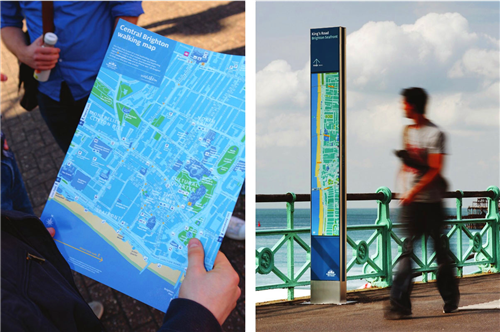 首批20個新的路標標識已經(jīng)設置在城區(qū)中心了,從海邊的皇后大道到城中著名的特魯雷街戲院區(qū),新版的城區(qū)地圖在游客信息咨詢中心可以免費獲取。同時,電子地圖可以在城市的旅游咨詢網(wǎng)站上找到你所需要的信息,在App商店、iTunes商店等都可以找到相應的程序下載。在布賴頓海邊,設計醒目、簡捷的城市地圖導視系統(tǒng),更能體現(xiàn)出空間對人行道的重要性。