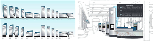 這次設(shè)計的范圍遍布所有的車站。無論是大型還是小型,具有歷史紀(jì)念意義的還是具有現(xiàn)代氣息的,從東北部的旅行長廊線站開始,設(shè)計師對票務(wù)處、大廳大門,以及現(xiàn)代LED流動信息屏的月臺標(biāo)識都進(jìn)行了重新的整合設(shè)計。以富有美感的、不規(guī)則的方形設(shè)計作為整個品牌設(shè)計的主體,顏色和形狀都讓人耳目一新。