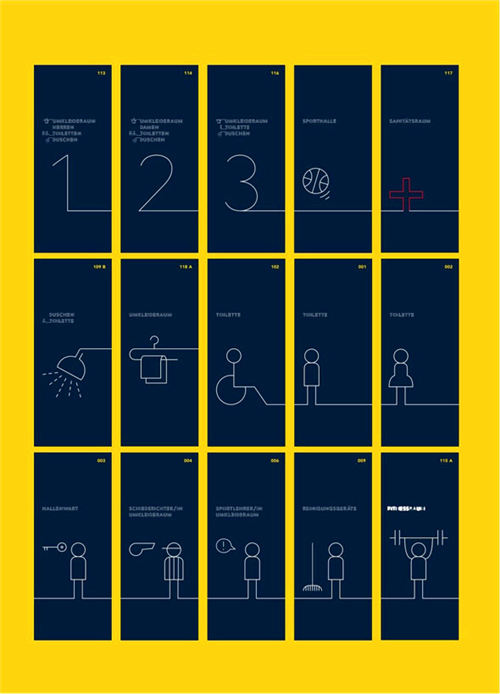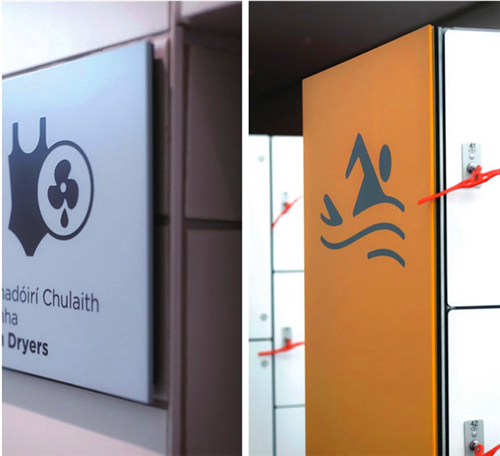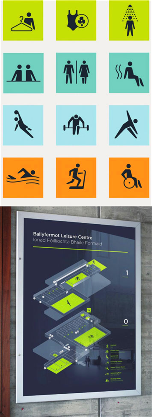 Detail.設(shè)計工作室為都柏林休閑中心設(shè)計了一套標識和導視系統(tǒng)。設(shè)計團隊還與設(shè)計師McGarry Ní éanaigh和建筑設(shè)計師Donnelly Turpin共同合作,設(shè)計一套人形的插畫標識。全套導視系統(tǒng)遍布了中心的各個角落。