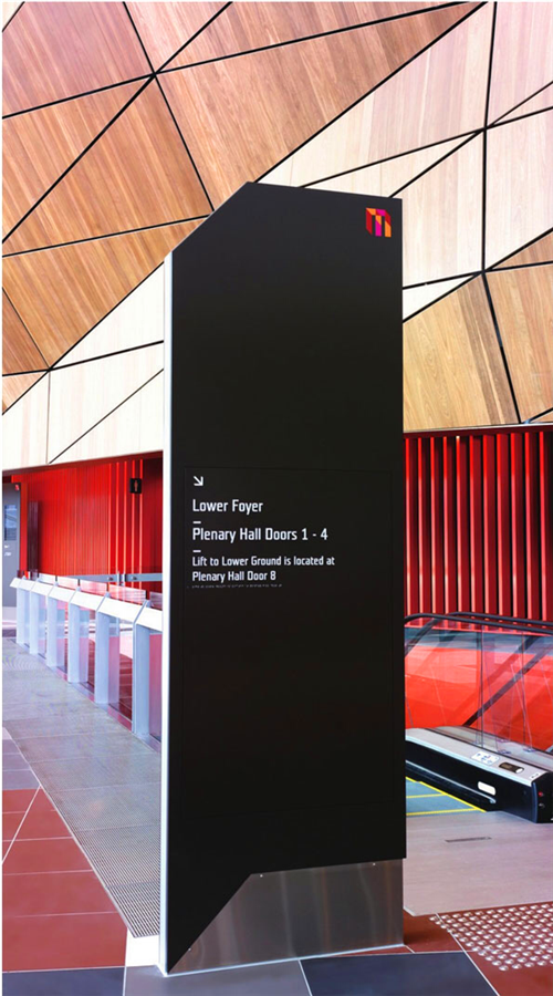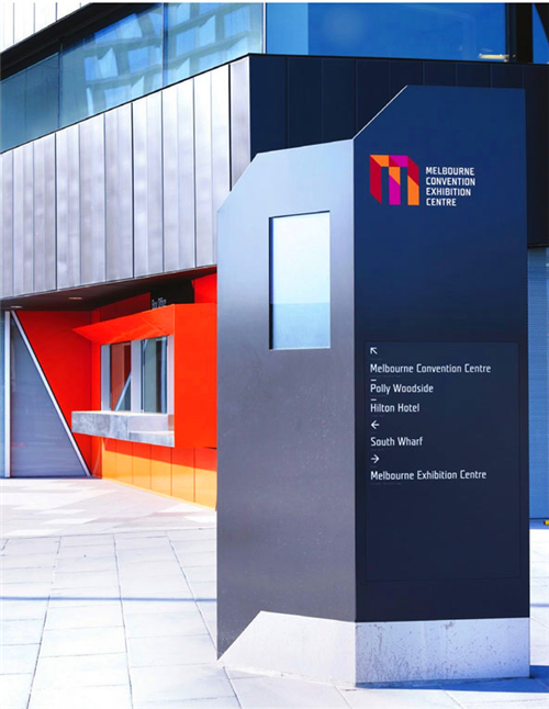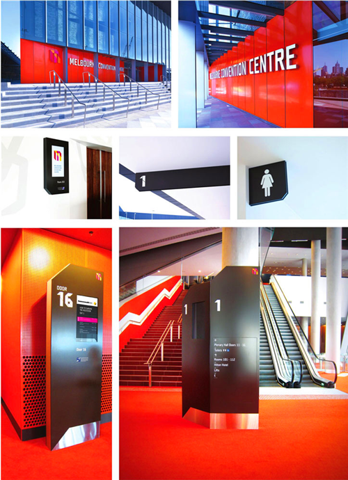 墨爾本會議展覽中心已經(jīng)舉辦了眾多大大小小各類的活動,并且擁有豐富的展覽經(jīng)驗。該中心的品牌商標設(shè)計利用了光學視線的錯覺感,以加強整個建筑物的空間感。標識結(jié)合了柔和的顏色,而這種柔和的顏色代表了品牌的文化,整個導視系統(tǒng)的設(shè)計使品牌文化與建筑設(shè)計相結(jié)合,讓人產(chǎn)生情感上的共鳴。當你來到會議中心的時候,總能領(lǐng)略到它獨特的魅力。