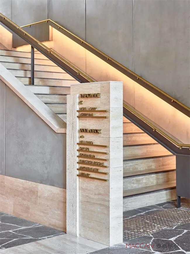 標(biāo)識導(dǎo)視系統(tǒng)作為設(shè)計(jì)元素出現(xiàn)在酒店空間,而易懂,方便閱讀,準(zhǔn)確傳達(dá)信息作為重要功能作用存在于酒店空間。