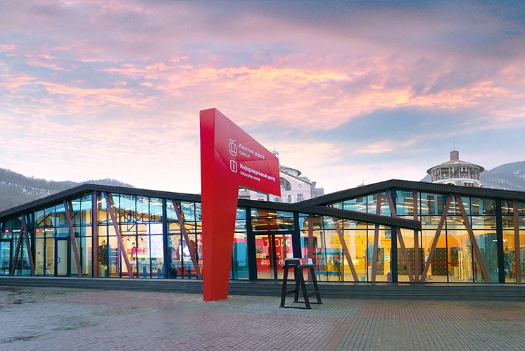 Krasnaya polyana購物中心位于俄羅斯高加索山區(qū),其標(biāo)識(shí)設(shè)計(jì)在外部采用鮮明的紅色和白色的配色,具有強(qiáng)烈的視覺沖擊力。購物中心外部架構(gòu)了巨大的標(biāo)牌,與建筑融為一體。購物中心里面使用黃色和白色的配色,整套導(dǎo)視系統(tǒng)塑造了品牌感。