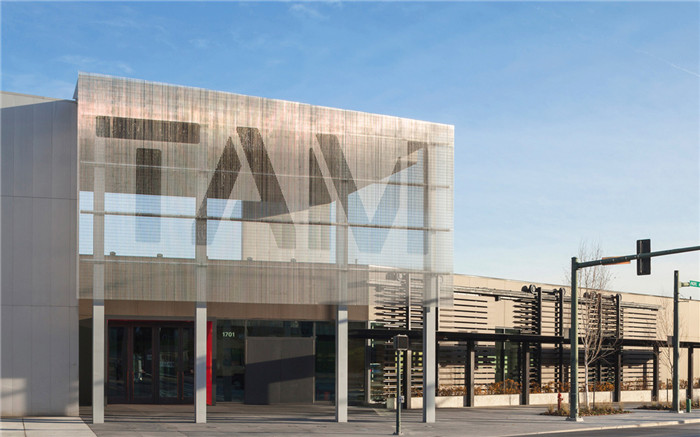 導(dǎo)視系統(tǒng)的材料的色彩元素參考了原始建筑:Antoine Predock的現(xiàn)代主義銀盒以及Olson Kundig建筑事務(wù)所的的新建筑,并采用當?shù)刂圃斓纳钭厣玆ichlite工業(yè)材料。明亮的不銹鋼與暗黑的工業(yè)鋼、TAM標志性的紅色品牌顏色進行鮮明的對比,簡單優(yōu)雅的導(dǎo)視系統(tǒng)加強了博物館在國內(nèi)外的形象,并促進吸引更多樣化的訪客。