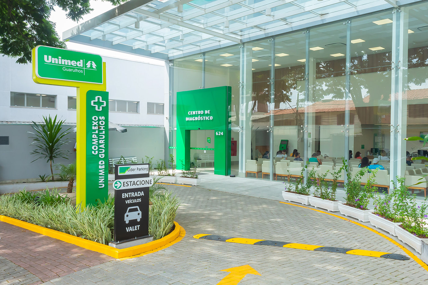 聯(lián)合系統(tǒng)是世界上最大的醫(yī)療合作系統(tǒng),也是巴西最大的醫(yī)療援助網(wǎng)絡(luò),覆蓋該國(guó) 84% 的領(lǐng)土。Luan Piani受邀為其瓜盧流斯市鎮(zhèn)的聯(lián)醫(yī)診斷中心進(jìn)行導(dǎo)視系統(tǒng)設(shè)計(jì)。