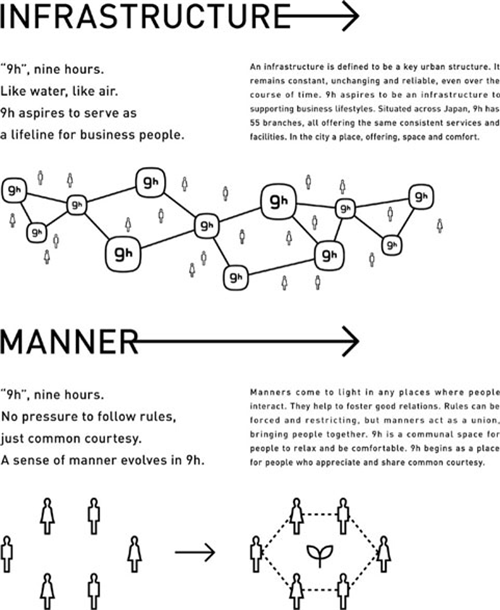 9h nine hours是一個(gè)具有強(qiáng)烈品牌創(chuàng)意的地方。9H代表了他們提倡的生活理念就是1小時(shí)的梳洗、7小時(shí)的基本睡眠時(shí)間,以及1套干凈的衣服。