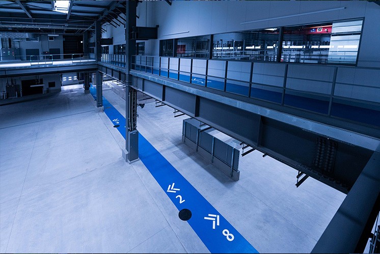 兩家公司巧妙地運(yùn)用了企業(yè)代表色——紅色和藍(lán)色。紅色被用于標(biāo)識(shí)設(shè)備和機(jī)械的移動(dòng)區(qū)域,象征著活力與動(dòng)力;藍(lán)色則用于標(biāo)識(shí)人員的活動(dòng)區(qū)域,代表安全與秩序。這種色彩分區(qū)不僅符合危險(xiǎn)與安全的國際標(biāo)準(zhǔn),還通過企業(yè)色彩的運(yùn)用增強(qiáng)了工廠內(nèi)部空間的獨(dú)特性和辨識(shí)度。