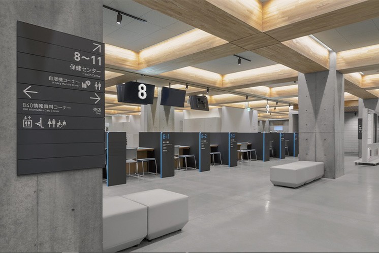 在導(dǎo)視系統(tǒng)的設(shè)計(jì)中,網(wǎng)格圖案被巧妙地應(yīng)用于標(biāo)志系統(tǒng)中,成為引導(dǎo)訪客的重要工具。這些標(biāo)志不僅清晰地指示了方向,還與周圍的建筑相互呼應(yīng),形成了一種獨(dú)特的視覺體驗(yàn)。當(dāng)訪客漫步于Yashio City的街頭,他們會(huì)被這些富有創(chuàng)意的標(biāo)志所吸引,仿佛置身于一個(gè)充滿詩意的空間。此外,Yashio City的導(dǎo)視系統(tǒng)還通過建筑與標(biāo)志的相互共鳴,創(chuàng)造出一種獨(dú)特的空間感。建筑與標(biāo)志不再是孤立的存在,而是相互交織、相互呼應(yīng)。這種設(shè)計(jì)不僅提升了城市的整體美感,還為居民和訪客提供了一種全新的空間體驗(yàn)。