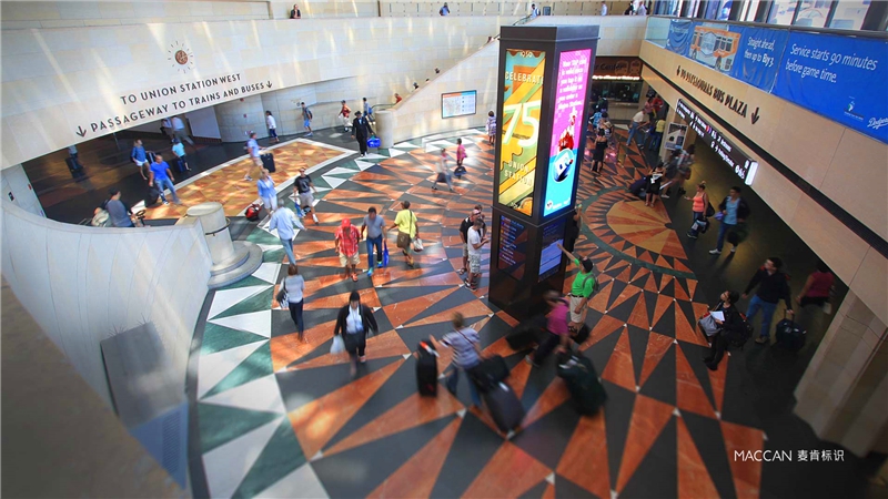 現(xiàn)代社會(huì),標(biāo)識(shí)標(biāo)牌早已滲透進(jìn)我們?nèi)粘I钪械拿恳粋€(gè)角落:從每日必經(jīng)的馬路上的指示牌,到各種公共場(chǎng)合里導(dǎo)視標(biāo)識(shí)。數(shù)字技術(shù)的發(fā)展為標(biāo)識(shí)導(dǎo)視系統(tǒng)帶來(lái)了更多的可能性,使標(biāo)識(shí)導(dǎo)視系統(tǒng)逐漸從傳統(tǒng)的靜態(tài)通信形式發(fā)展到動(dòng)態(tài)演示的數(shù)字標(biāo)志系統(tǒng)形式。導(dǎo)向系統(tǒng)不再局限于信息傳播的硬件設(shè)施,而是更多地體現(xiàn)為一個(gè)信息系統(tǒng)項(xiàng)目,其主要特點(diǎn)是交互性、用戶(hù)識(shí)別、用戶(hù)體驗(yàn)、信息集成等。