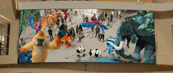 這塊LED大屏就不僅僅是展示視覺畫面這么簡(jiǎn)單了,你還能跟屏幕里的動(dòng)畫實(shí)時(shí)互動(dòng)。