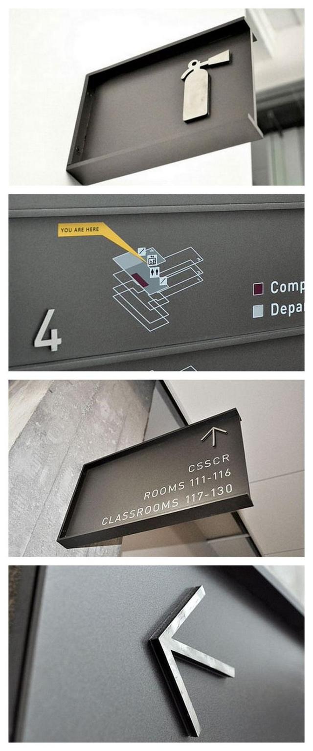 優(yōu)秀的指示牌,創(chuàng)意設(shè)計與材質(zhì)工藝與空間環(huán)境有效的融合在一起,最大化解決指示功能的同時,又不會對整體的環(huán)境造成損害。