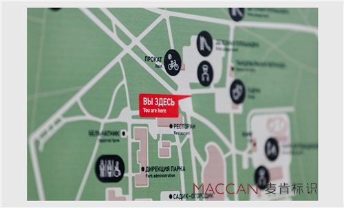 “標識系統(tǒng)設計”是公園公共空間的重要組成部分,它以規(guī)劃和設計連貫指示系統(tǒng)為內容,融合了地域文化、公園平面地圖、標志、定向標識指示和貫穿于建筑環(huán)境的細節(jié)線索,幫助人們在不同的地理位置中尋找定向。好的導視系統(tǒng)中既有清晰易懂的指示和信息,也具有隱含意義和符號。