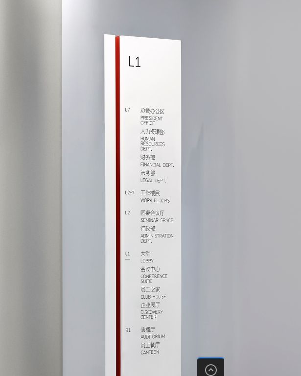 大廈標(biāo)識的建立及完善能夠讓初來乍到人了解到整個大廈的結(jié)構(gòu)布置,知道他們當(dāng)時在整個大廈的位置,并且知道目標(biāo)位置在哪兒,從而使得消費者能夠在大廈中輕松的知道自己所要到達(dá)的地點。
