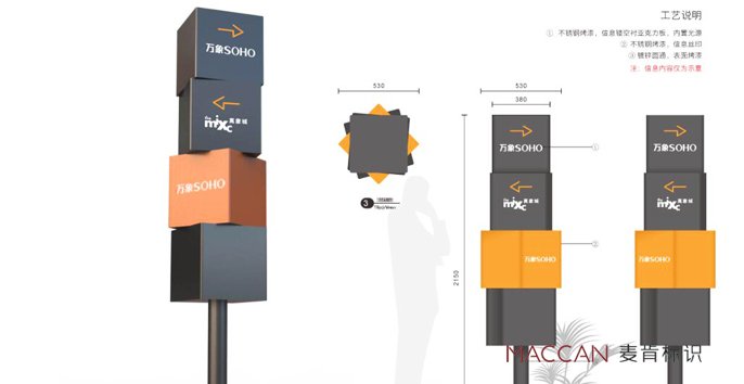 從圖標(biāo)、字體再到導(dǎo)視造型,現(xiàn)代簡(jiǎn)約不呆板,活潑又不夸張,使得導(dǎo)視系統(tǒng)能夠更好的融入華潤(rùn)萬(wàn)象SOHO的空間環(huán)境,麥肯為贛州華潤(rùn)萬(wàn)象SOHO創(chuàng)作了很棒的導(dǎo)視設(shè)計(jì)方案。