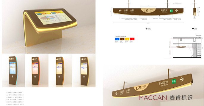 SM天津濱海城市廣場導(dǎo)視系統(tǒng)設(shè)計的大小是以環(huán)境背景為參照,在設(shè)計滿足本質(zhì)功能的同時,與整體環(huán)境協(xié)調(diào)統(tǒng)一。商場導(dǎo)視系統(tǒng)設(shè)計制作材料的質(zhì)感和肌理對傳達整體環(huán)境有著重要的作用,為使人對商場空間環(huán)境產(chǎn)生整體的認同感,材料也應(yīng)與環(huán)境本身匹配并有適度的對比。