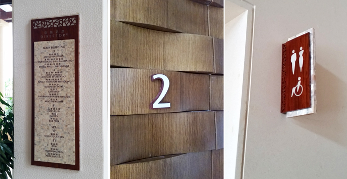 酒店內(nèi)的各種導(dǎo)向標(biāo)識(shí)都呈現(xiàn)出簡(jiǎn)約而有質(zhì)感,在為客人提供完善貼心的服務(wù)的同時(shí),完美展現(xiàn)酒店的品質(zhì)。