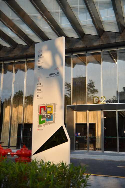 整套標(biāo)識(shí)以黑白為主調(diào),很符合科技園區(qū)嚴(yán)肅簡(jiǎn)潔氛圍,整體系統(tǒng)簡(jiǎn)潔大方。將其功能性發(fā)揮到最大化。在直觀明了的導(dǎo)視牌面輔以三維化導(dǎo)視牌,讓路癡的你也有了方向感。