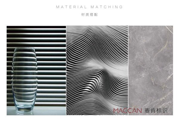 采用優(yōu)雅的香檳色和深灰色為主色調(diào),營造舒適時尚的獨特空間流暢感。材質(zhì)則采用透明玻璃中和大面積石材的融合,整體標識顯得輕盈通透,同時搭配金屬線條和大理石的文理,提升整體空間的精致感和品質(zhì)感。