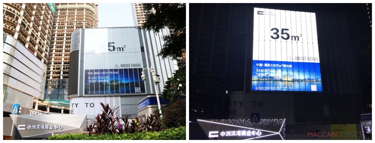 通過克服技術(shù)難點,從材料進場到現(xiàn)場施工準備再到落地施工,中洲濱海商業(yè)中心410㎡燈箱廣告獲得明顯超越常規(guī)動感燈箱的優(yōu)異視效。