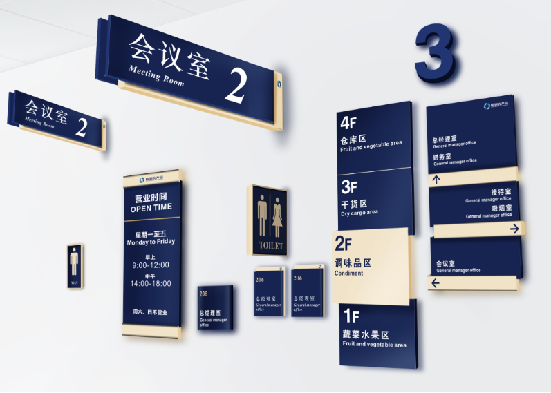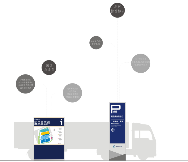 以藍(lán)白色為主調(diào),很符合工業(yè)園區(qū)環(huán)保簡(jiǎn)潔氛圍,整體系統(tǒng)簡(jiǎn)潔大方。將其功能性發(fā)揮到最大化。在直觀明了的導(dǎo)視牌面輔以三維化導(dǎo)視牌,讓路癡的你也有了方向感。