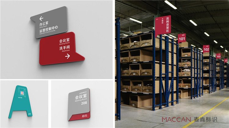 “亞洲一號”是京東將自動化運營中心打造成亞洲范圍內(nèi)B2C行業(yè)內(nèi)建筑規(guī)模最大、自動化程度最高的現(xiàn)代化運營中心的一個項目。麥肯應(yīng)邀打造的 “亞洲一號” 京東物流園標(biāo)識導(dǎo)視系統(tǒng),首先為物流園區(qū)場地內(nèi)的所有區(qū)域做了一個整體規(guī)劃布點,集倉儲、分揀、備件、售后、 宿舍、餐廳等功能區(qū)域指引,根據(jù)業(yè)務(wù)需要和流設(shè)備投入差異,可以將其分為三種類型:高度自動化項目、適度自動化項目、普通園區(qū)。