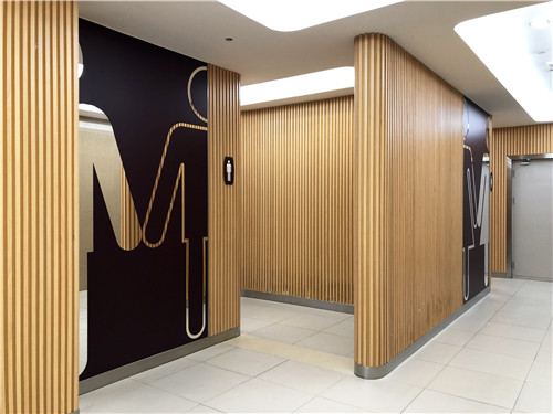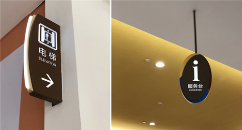 商場(chǎng)導(dǎo)視系統(tǒng)設(shè)計(jì)制作材料的質(zhì)感和肌理對(duì)傳達(dá)整體環(huán)境有著重要的作用,為使人對(duì)商場(chǎng)空間環(huán)境產(chǎn)生整體的認(rèn)同感,材料也應(yīng)與環(huán)境本身匹配并有適度的對(duì)比。
