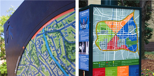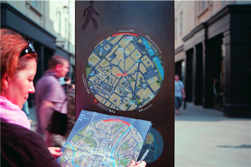 首批20個新的路標標識已經(jīng)設置在城區(qū)中心了,從海邊的皇后大道到城中著名的特魯雷街戲院區(qū),新版的城區(qū)地圖在游客信息咨詢中心可以免費獲取。同時,電子地圖可以在城市的旅游咨詢網(wǎng)站上找到你所需要的信息,在App商店、iTunes商店等都可以找到相應的程序下載。在布賴頓海邊,設計醒目、簡捷的城市地圖導視系統(tǒng),更能體現(xiàn)出空間對人行道的重要性。