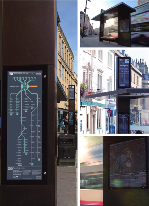 交通信息系統(tǒng)同樣作為巴斯市信息導視系統(tǒng)的一部分,其中就包括了站點地圖和時間表。