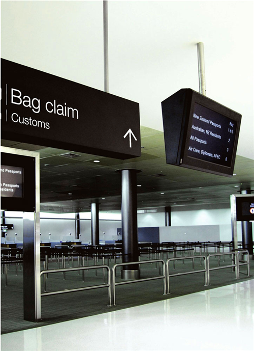 在奧克蘭國際機(jī)場裝修期間,設(shè)計師對機(jī)場內(nèi)部的導(dǎo)視系統(tǒng)同時進(jìn)行了重新布置和設(shè)計,從而避免旅客浪費(fèi)時間,同時還為機(jī)場減少了一定的時間和經(jīng)濟(jì)成本。
