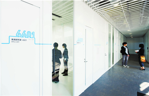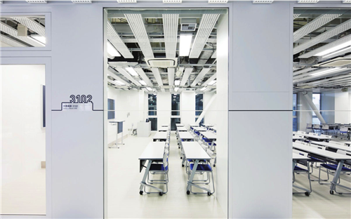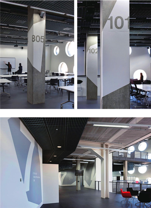 這次設(shè)計(jì)的理念是“導(dǎo)視線”,即所有的信息如教室編號(hào)、導(dǎo)視系統(tǒng)等都遵循“一線到底”的原則。