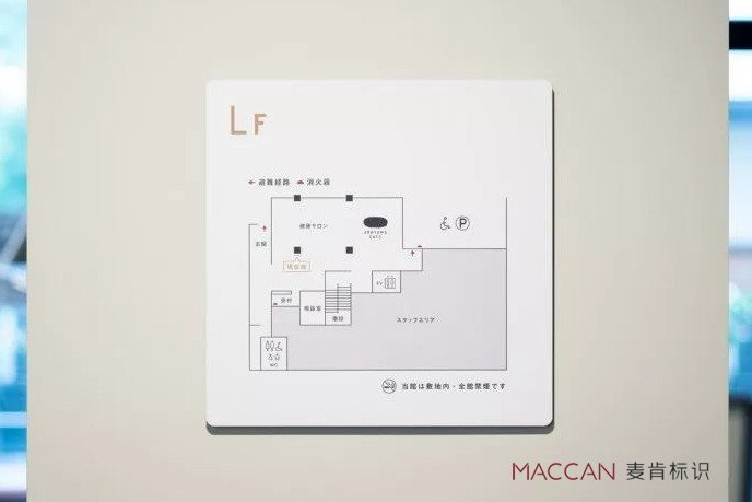 或許因?yàn)閲撩娣e狹小的緣故,日本的建筑設(shè)計(jì)更偏愛營造出“空”的感覺。Abeyama的導(dǎo)視設(shè)計(jì)亦遵循了這種留白式的傳統(tǒng),簡練之外沒有多作一分的裝飾,訪客得以保持注意力集中,不受干擾地迅速接收必要信息。