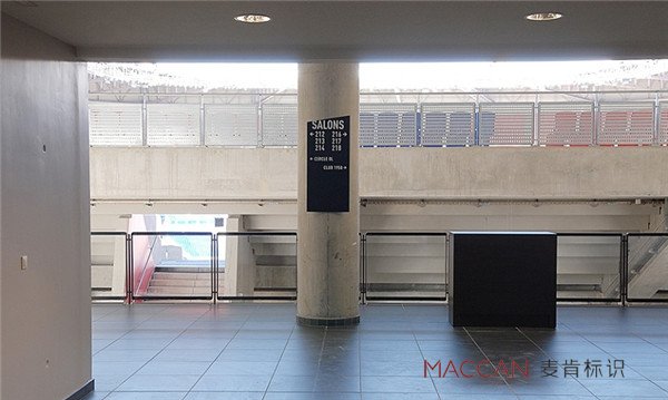 場館內(nèi)導(dǎo)向標(biāo)識的主要作用是幫助觀眾對號入座,并指示樓梯、電梯、衛(wèi)生間等公共服務(wù)設(shè)施。根據(jù)位置不同,可分為看臺標(biāo)識和集散廳標(biāo)識兩類。