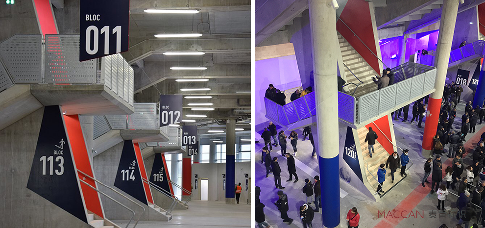 剔除不利因素,導(dǎo)視設(shè)計應(yīng)該控制到達體育場的交通狀況,前往體育場館的步行體驗,排隊組織和遮蔽。找座位應(yīng)具有引導(dǎo)性、避免堵塞。中場買啤酒或零食也是一種體驗,流線復(fù)雜則會錯過比賽精彩瞬間。