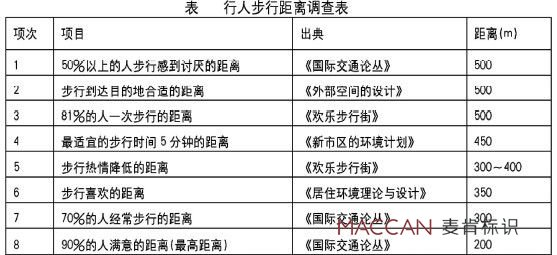 根據(jù)調(diào)查表可知,人最滿意的連續(xù)步行距離為200米;一般情況下,行人連續(xù)步行的距離在300米~500米;連續(xù)步行500米以上,就會令行人感到厭煩。因此,休憩和放松的環(huán)境必須穿插在商業(yè)活動之中,才能保持顧客的體力和購物熱情。