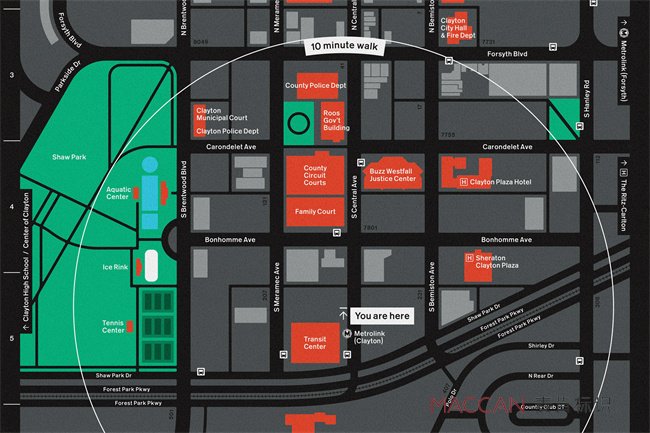 信息圖和地圖的設計,是導向標識系統(tǒng)設計里重要的部分,它們?yōu)楣娞峁┝撕暧^的空間情況及其具體的方位關系。