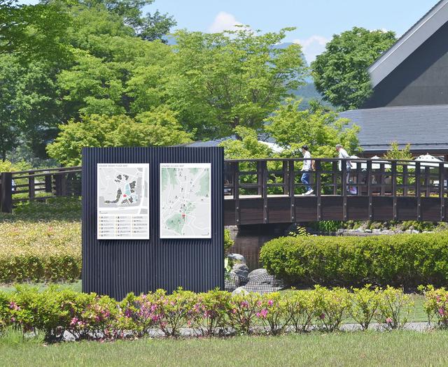 川場(chǎng)村,是位于日本群馬縣一個(gè)小型旅游景點(diǎn),景色優(yōu)美,溫度適宜,很受游客歡迎,每年有大致120萬游客到訪。因?yàn)轭A(yù)算有限,設(shè)計(jì)師采用了價(jià)格低廉的瓦楞板來做標(biāo)識(shí)牌。金屬瓦楞板耐腐蝕,而且材料可以讓人很容易聯(lián)想到自然和“耕作”,和川場(chǎng)村大量依賴農(nóng)業(yè)經(jīng)濟(jì)的實(shí)際情況相符合。但是瓦楞板的波浪形表面,導(dǎo)致直接寫在瓦楞板上的內(nèi)容很難別識(shí)別,需要經(jīng)過設(shè)計(jì)處理,讓標(biāo)識(shí)顯得有節(jié)奏感。