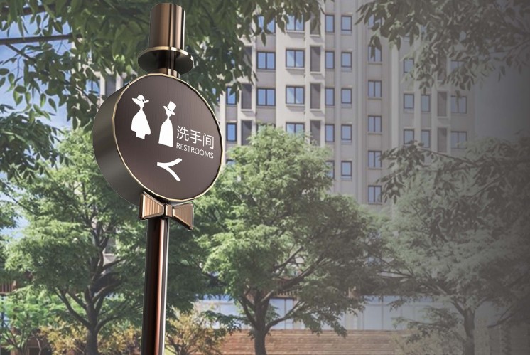 主色調(diào)上“品質(zhì)金”的選擇,標(biāo)牌造型及形式的確定,圖標(biāo)icon的設(shè)計(jì),文字內(nèi)容排版,凸顯紳士品質(zhì),無(wú)一不是專業(yè)性的體現(xiàn)。導(dǎo)視設(shè)計(jì)除了最本質(zhì)的方向引導(dǎo)之外,能夠?qū)⑽幕M(jìn)行傳播,還能引導(dǎo)一種新的生活方式,讓鄰里關(guān)系有溫度,使社區(qū)生活有色彩,人們?cè)谶@里把生活過(guò)成詩(shī),富盈美好而精致。