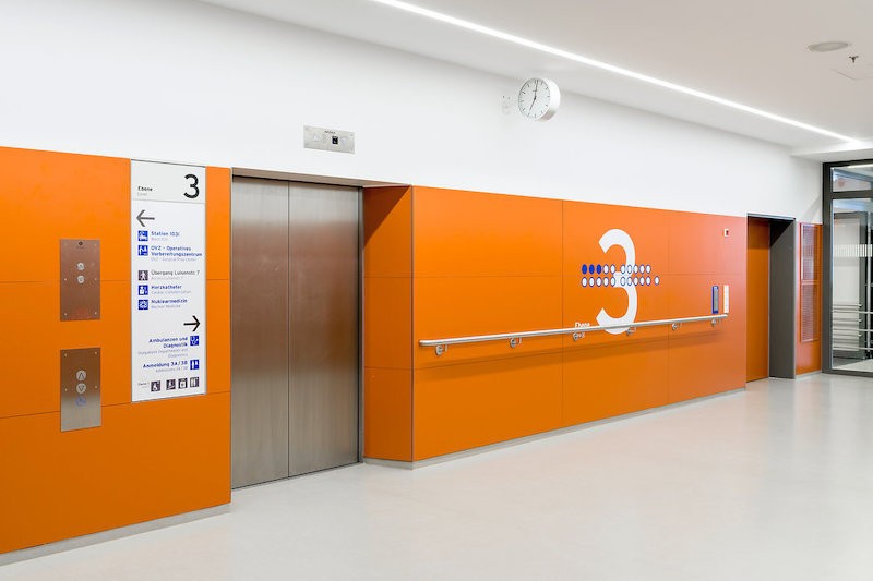 基于翻新后的Charité醫(yī)院,moniteurs公司在應(yīng)急服務(wù)大樓外立面設(shè)計(jì)了紅色的線條引導(dǎo)元素,與白色外立面形成強(qiáng)烈的視覺沖擊力,有助于急診快速定位。內(nèi)部巨大的icon便于進(jìn)行訪問,樓層采用色彩編碼,整套導(dǎo)視系統(tǒng)信息完善,具有良好的信息傳達(dá)度。