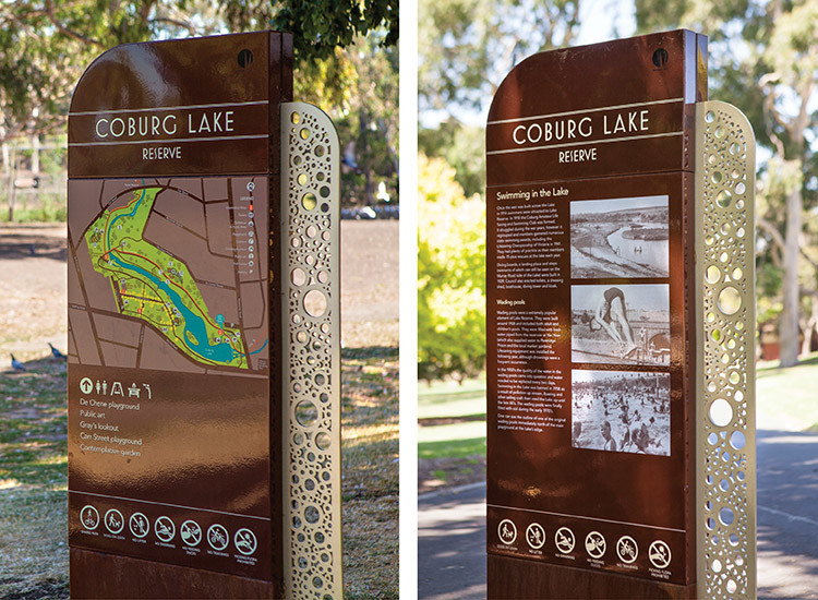 科堡湖位于墨爾本北郊,一百多年來(lái),科堡湖一直是莫蘭社區(qū)生活的中心,擁有許多珍貴的地標(biāo)。Aspect工作室受邀為其進(jìn)行導(dǎo)視系統(tǒng)設(shè)計(jì)。