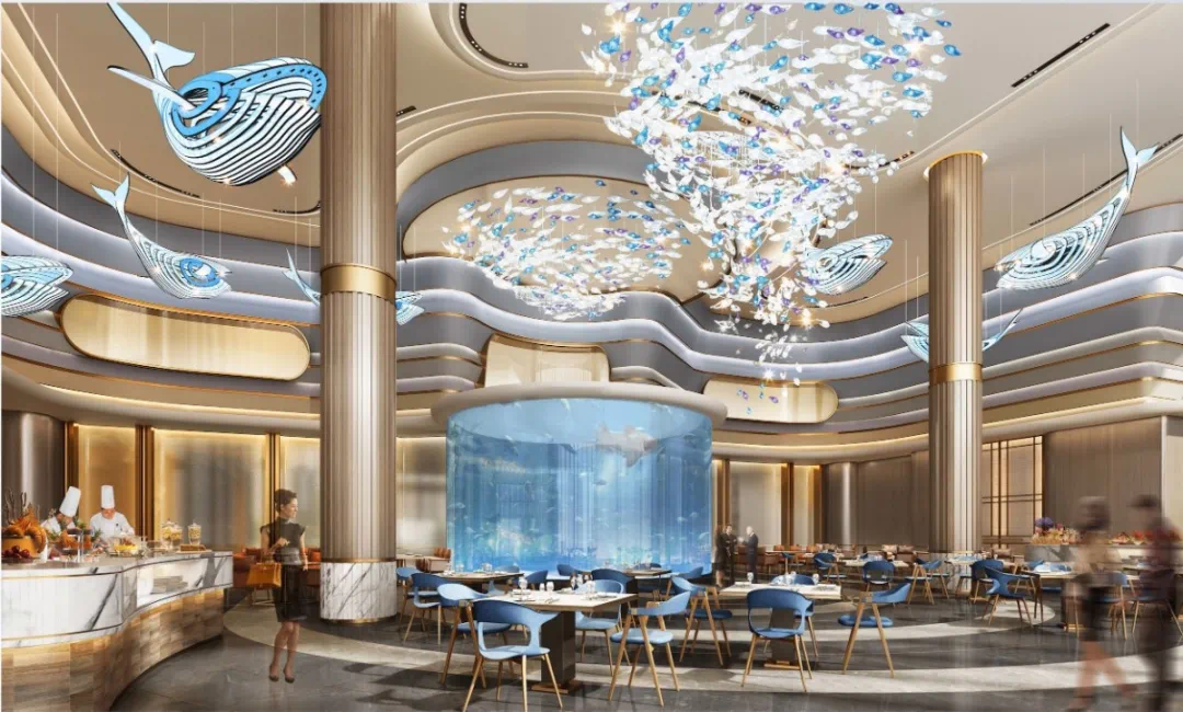 云海睿途酒店位于湖北省襄陽(yáng)市東津新區(qū),是襄陽(yáng)華僑城奇幻度假區(qū)首發(fā)酒店產(chǎn)品。麥肯標(biāo)識(shí)這場(chǎng)關(guān)于海洋的設(shè)計(jì)之旅秉承了酒店“以海洋主題為核心,倡導(dǎo)人與自然交融共生”的設(shè)計(jì)理念,設(shè)計(jì)遵循曲線(xiàn)的韻律感,展現(xiàn)出了極具人性化的趣味設(shè)計(jì)空間。