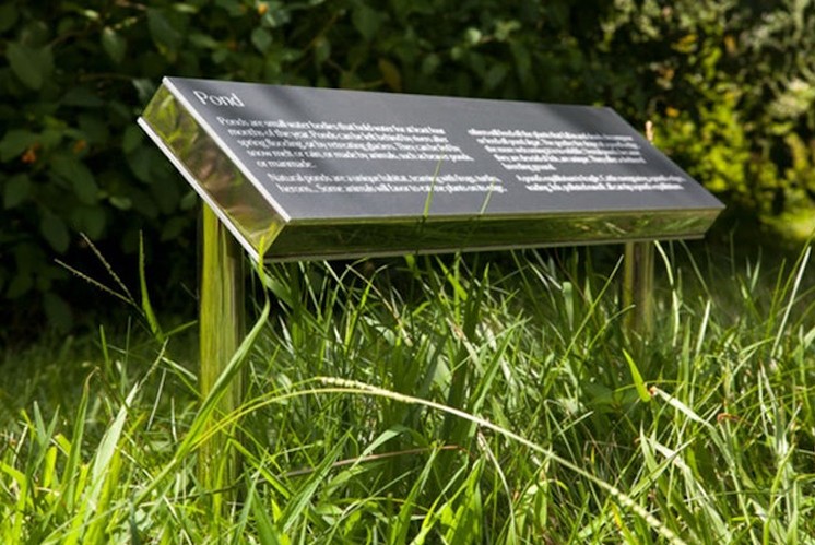 五角星公司從精致的建筑汲取靈感設(shè)計(jì)了簡約的標(biāo)牌,標(biāo)牌采用雕刻的形式,字體和icon設(shè)計(jì)纖細(xì)優(yōu)雅?;陂_放性和可訪問性,在標(biāo)牌上增加了盲文。使用鋁制標(biāo)牌,信息采用白色,與建筑形成一體。戶外標(biāo)牌使用鋁制面板和鍍鉻飾板,與自然環(huán)境相協(xié)調(diào)。
