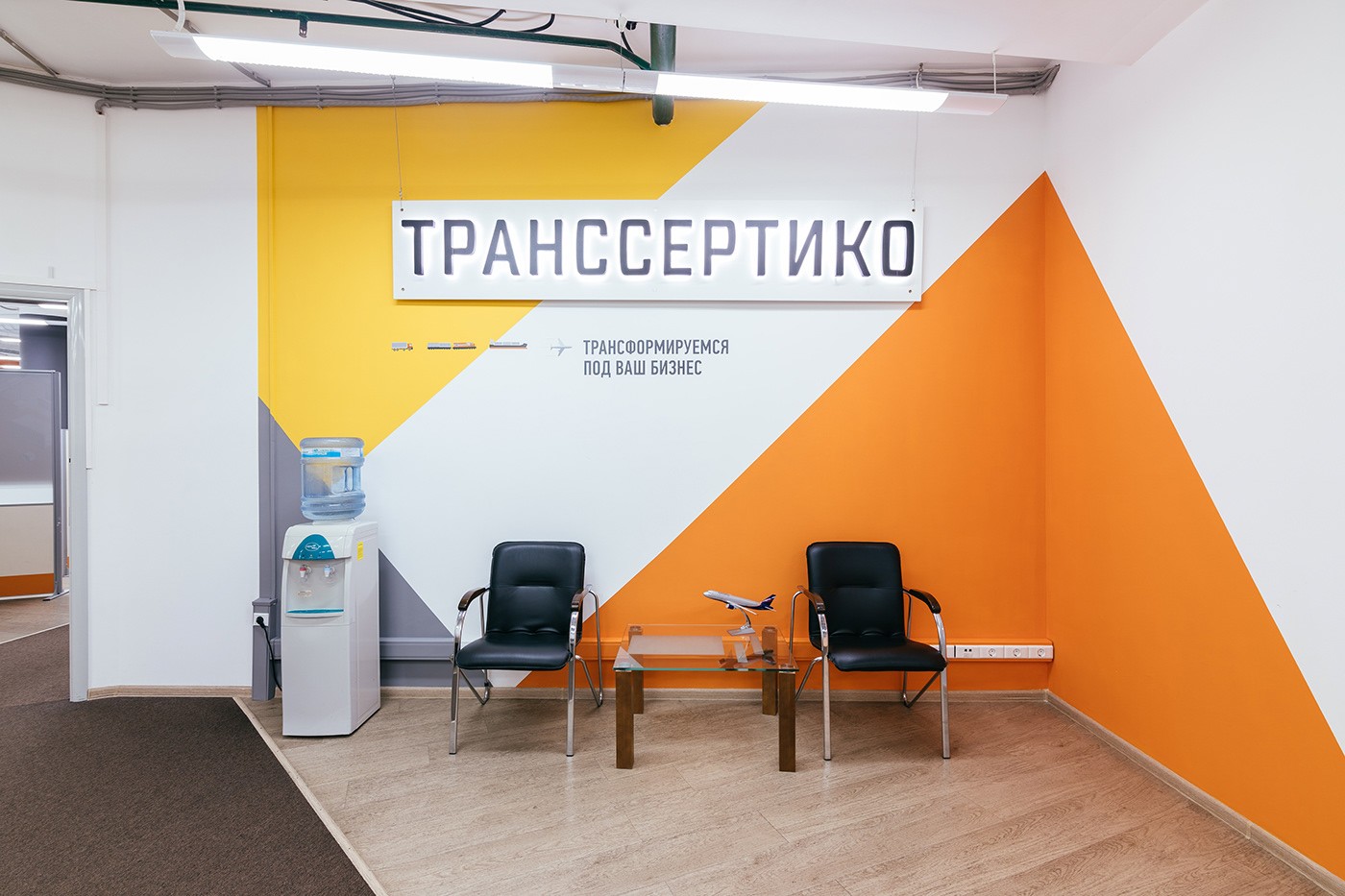 Sergey Scoler為其設(shè)計(jì)了飛機(jī)、物流倉(cāng)儲(chǔ)等環(huán)境圖形,與公司業(yè)務(wù)相契合。采用黃色、橙色、灰色和黑色的配色,打造了具有活力的辦公環(huán)境。多變的色塊遍布整個(gè)辦公空間,寓意著克服困難。