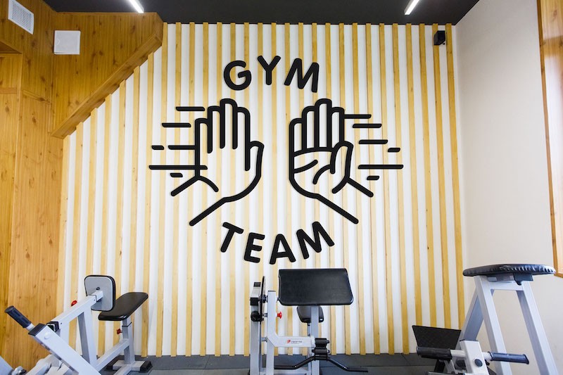 GYM TEAM健身俱樂部內(nèi)部空間舒適明亮,Zernaev Studio針對其提倡的合作精神設(shè)計了擊掌的logo,導(dǎo)視系統(tǒng)貫穿了手這一元素,設(shè)計了一系列手勢來傳達(dá)信息,營造了積極友好的氛圍。在更衣室增添了標(biāo)語,增加了趣味性。