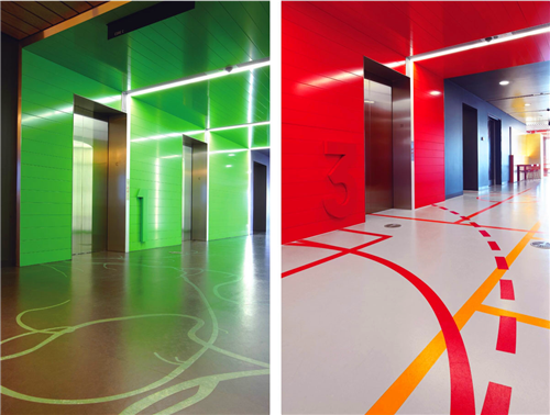 在咨詢室旁的走廊上,一進(jìn)門就可以看到一個(gè)用玻璃橫梁懸掛的大型立體字母,代表著不同功能的分區(qū)。