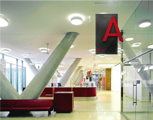 設(shè)計(jì)項(xiàng)目主要針對(duì)AK的主體大樓進(jìn)行標(biāo)識(shí)和導(dǎo)視系統(tǒng)的設(shè)想和設(shè)計(jì)。通過(guò)對(duì)以往功能的轉(zhuǎn)變、形象設(shè)計(jì)的創(chuàng)新,以及大樓的建筑設(shè)計(jì),該項(xiàng)目的總設(shè)計(jì)師讓這棟建于1950年的大樓在保持原有特色的基礎(chǔ)上顯得美輪美奐。